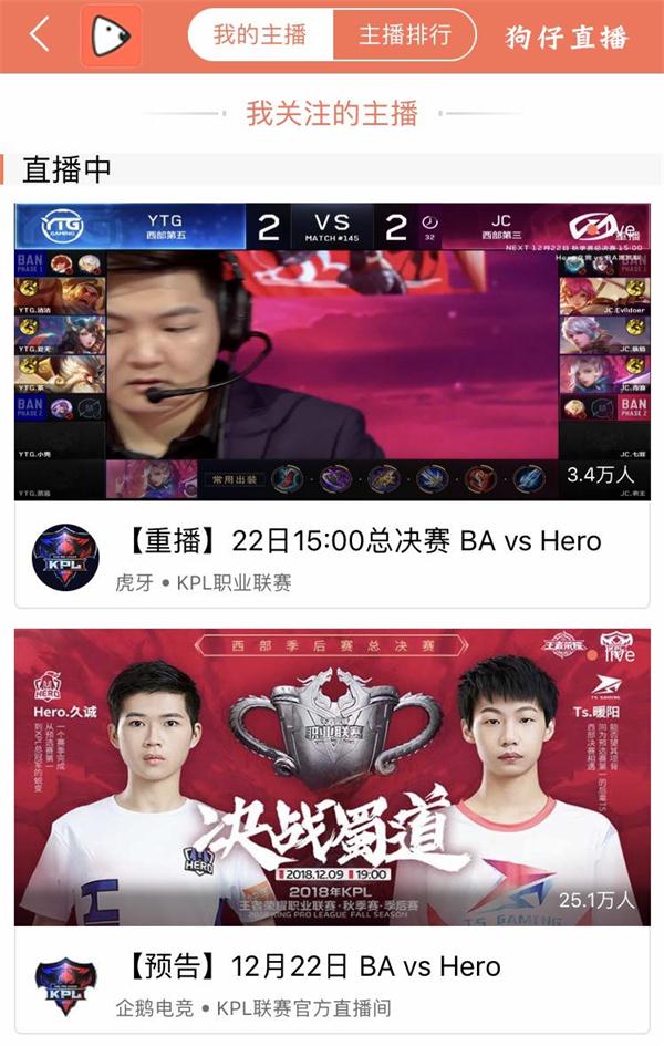 (Hero比赛现场 狗仔直播APP截图画面)