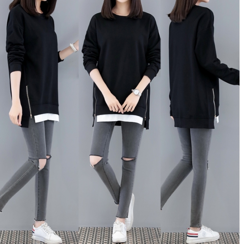 时尚简约派中款加绒卫衣裙,不妖艳也不俗套,反倒显得既休闲又不乏时尚感;黑色拉链款,底部采用白色修边,既不显得太花俏,也不会太过单调;时尚下摆设计,穿着轻松舒适显身瘦,最时尚的单调便是单调的时尚,只要黑色系一上身,向别人尽情展现你的神秘之美~