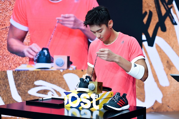 在倡导新年开启“炫腹”计划之余,宁泽涛也希望能够通过自己的实际行动呼吁大家关注贫困地区儿童体育资源匮乏的问题,祝愿每个孩子都能通过运动创造更好的未来。他在阿迪达斯新年系列中,挑选了一双他心仪的新春配色UltraBOOST,并以自己的创造力在现场将跑鞋系成了一个高难度中国结鞋带,带给大家原汁原味的新年祝福。宁泽涛还在BOOST中底部位签名,将跑鞋化身为创意单品,并作为本次“集结创造者”在线公益拍卖的拍品之一,希望能够为更多的孩子带去帮助。