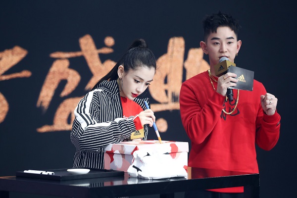盛典现场,与阿迪达斯再度联手的中国当代雕塑艺术家任哲先生率先登台,诠释此次新年系列 “能”的概念。“能”这一汉字在中国传统文化中意义非凡,它代表了运动中迸发的“能” 量与不断突破自我的 “能” 力。任哲表示,适逢中国乙亥猪年,中国四大名著之一《西游记》中猪悟能的名字激发了他的创作灵感,在设计过程中巧妙拆解 “能” 字,并通过中国传统书法刚柔并济地重新演绎,向大众传达出喜庆猪年的美好寓意。他希望巧妙融合运动和艺术,以个性化的设计鼓励大众在新年用创造力重新定义运动,以运动引爆新潮流!