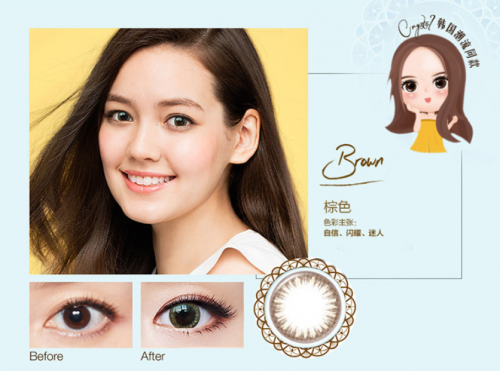 配戴特色:温柔的棕,与东方女性瞳色适配,在自然过渡中,流露出自信迷人的闪耀双眸。