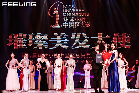 决赛佳丽无一不是万里挑一,她们代表着女性的美丽、健康、活力、富有内涵的形象。18号佳丽-丁铛歌除了拥有灿烂自信的笑容外,一头柔顺飘逸的健康秀发也让人印象深刻,脱颖而出从众多选手中被评选为“璀璨秀发大使”。环球小姐官方指定美发品牌-菲灵FEELING品牌总经理-史张敏先生现场登台为她颁发荣誉奖杯。