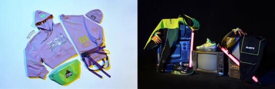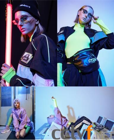 此次LI-NING x X-girl的联名,在主题PROJECT [LX 0991]之下,同样以SNS作为灵感,打造出专属于女生的系列产品线。此系列运用柔和的紫色作为主色调,其中图案印花的灵感来自早期网络聊天室和E-MAIL软件的icon。超长款的高领卫衣,在柔和紫为主色的基础上加入了荧光绿的字体刺绣,字体的纵向排列呈现出代码划过屏幕的既视感。系列中外套帽衫的剪裁更加的女性化,使用了一些3M材质面料作为点缀,在提升腰线的同时又增加了一种复古未来感。短款梭织套装,运用了大量条状拼接3M反光面料,胸前左右两个合作logo的刺绣胸章装饰使整体造型的未来制服感骤增。更值得一提的是,LI-NING x X-girl的联名带来了之前巴黎时装周关注度极高的蝴蝶2018高帮版本。以“蝴蝶2018”为蓝本,用时下流行的灯芯绒材质与翻毛皮搭配表达,加之高帮设计,更加凸显本季街头、机车的设计风格属性,而柔和紫主题色调配色与鞋舌、后跟位置的李宁与X-girl联合logo更增添了系列中单品女性化的感觉。