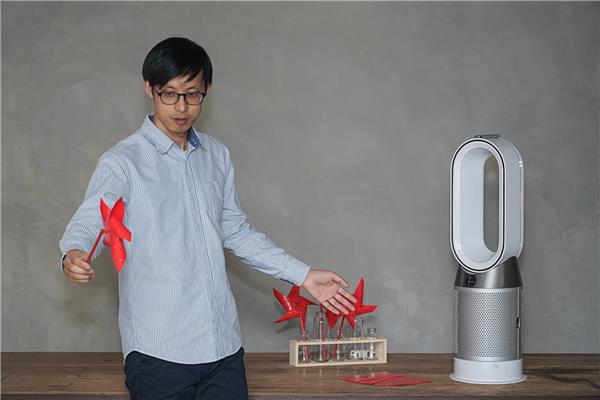 为真实家居打造:戴森空气净化暖风扇为满足实际家庭需要而设计。戴森的工程师设计了测试实验。该实验模拟常见的家居环境大小,不加设风扇,通过布设在实验舱角落的8个传感器和位于实验舱中心的1个传感器每10秒钟收集一次空气质量数据,该传感器能够检测出比人的头发10窄300倍的室内空气污染颗粒,即PM0.3。在对所有9个传感器传来的数据分析之后,戴森工程师证实戴森空气净化暖风扇对整个房间的清洁效果是基本一致的。