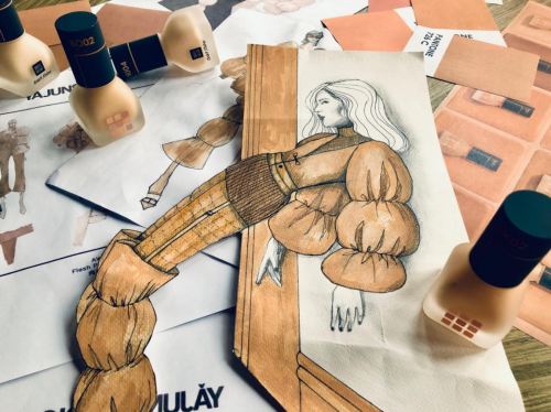 此款粉底液的9种中国肤色色号,轻薄易延展的舒适性也为YAJUN STUDIO的主创设计师带来惊喜灵感,以粉底液质地创作了此季服装系列的手绘稿。此次服装系列来源于肉身哲学概念,以国人肤色取色,打造肉体/时间/空间三个维度里最舒适的着装体验。