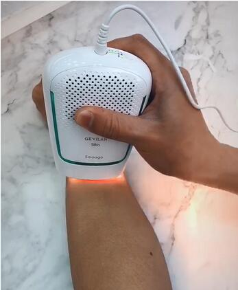 GEVILAN的界面非常简洁易懂,全程操作就凭一个按钮,通电——》选档——》紧贴皮肤打光,操作起来完全是傻瓜式。