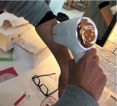 用起来有轻微漏光,所以也是需要佩戴护目镜。三款里面它是唯一带显示屏的,能在上面看到发光次数余额,还能连wifi什么的,实用性不是特别强,能给枯燥的脱毛过程增加点趣味和仪式感吧。