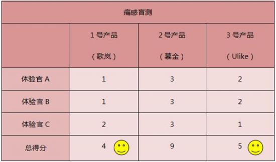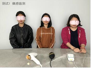 我们给3位体验官蒙上眼睛,轮流体验3款产品的最高档位,按痛感强烈程度给它们排序,“最痛”得3分,“适中”得2分,“最温和”得1分。