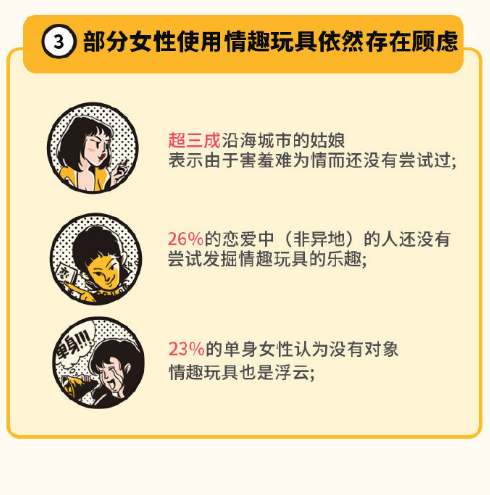 调查中的绝大部分受访者对使用情趣玩具持积极、喜爱的态度,但仍然有小部分女性对使用玩具存在顾虑。害羞、不感兴趣等心态成为了这部分女性尝试情趣玩具的“拦路虎”。