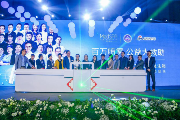 参加活动的皮肤科医生代表、新浪时尚媒体代表也相继发言,最后,在全体嘉宾“法国美帕公益之光,照耀你我!”的响亮口号中,百名皮肤科专家现场助威,共同开启了法国美帕“修复季”医生魔法箱,通过“光与影”交织的艺术空间,宣告百万喷雾公益大救助正式开启。