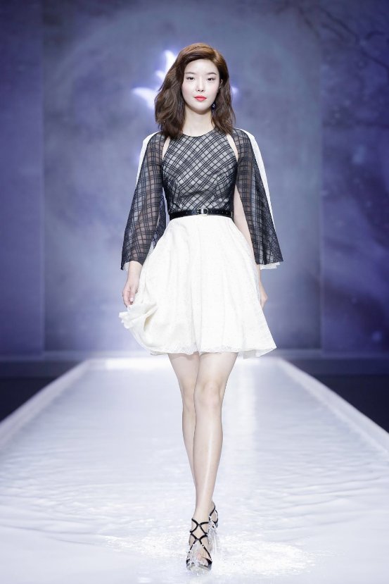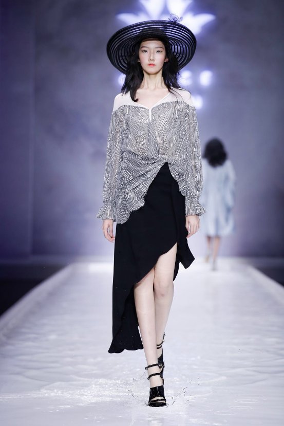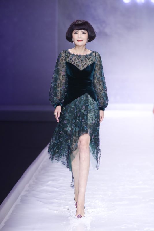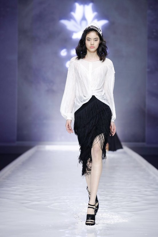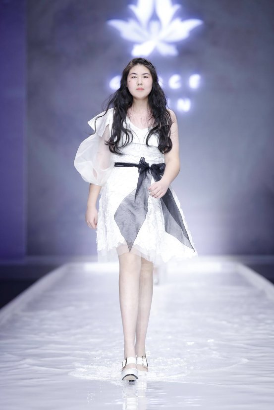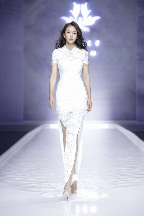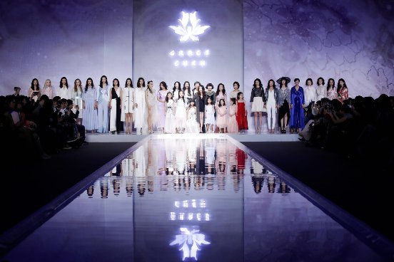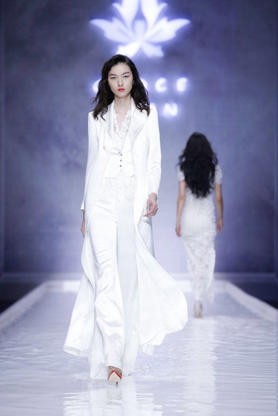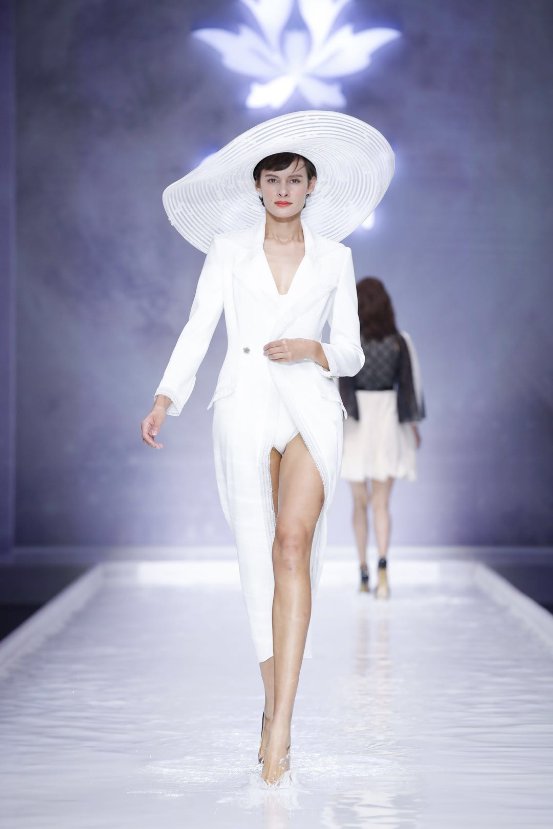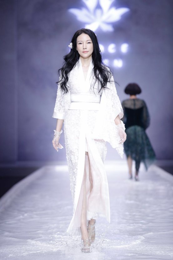 灯光缓缓暗垂,空灵的音乐划破宁静,被赞誉为“东方天鹅公主”芭蕾舞蹈家邱思婷以优雅的舞姿划破静空,亦动亦静间演绎着女性旖旎而不失高雅的姿态。T台一开场,水台纵深延展在T台上,水光粼粼跟随模特们的步伐向外泛起片片涟漪,“静”的意境跃然眼前。著名演员母其弥雅、著名画家潘然、超模教母韩姨、著名律师魏军、著名企业家严敏等出色女性现身T台,格外灵动,恍若行走于湖心,意境非凡。