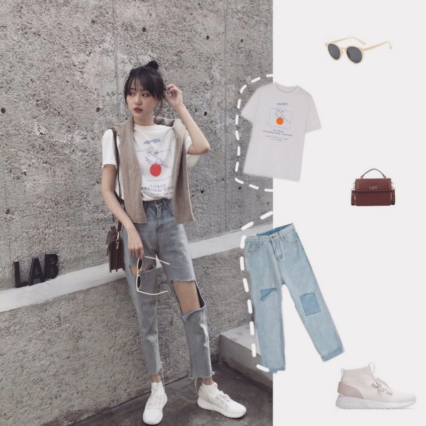 天气再暖和点,就可以pick博主胖歌歌哒的穿搭了。破洞牛仔裤是最显瘦的单品之一,白色袜套鞋不仅时髦度超预期,还能修饰腿型、拉长双腿,两款神器组CP,显瘦指数无敌鸭!即使上身随意搭配一件基本款的白T,也是青春洋溢,活力满分。