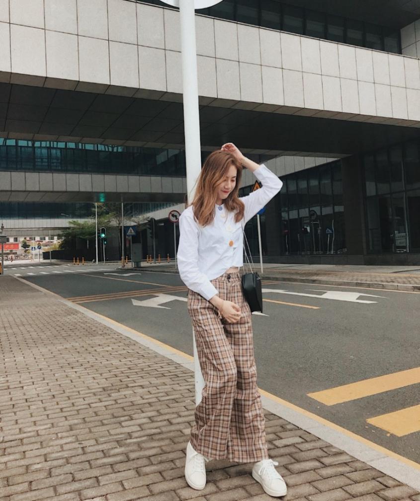 阔腿裤同样是遮肉爆款,达人桑迪啾用来搭配简约小白鞋,吸睛力double。