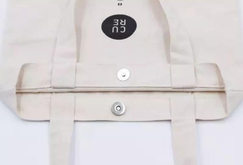 想到大家在背上这款帆布袋时,总会有些东西不希望暴露在外,因此我们在袋口缝制了一颗磁扣,防盗又实用,为你锁住你的那一方小世界。