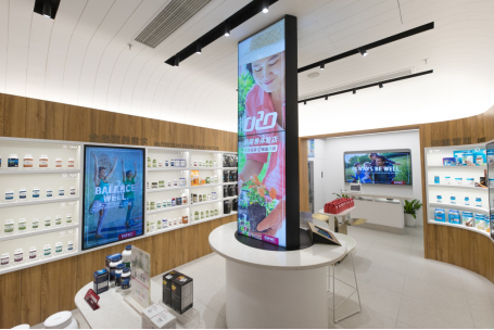此番GNC O2O新零售体验店店内设计焕然一新,将自然风格与强调感官体验的零售概念相结合,意在打造健康活力的沉浸式空间,让到店消费者通过“认知——探索——互动”的动线路径实现从认知到购买的闭环体验。