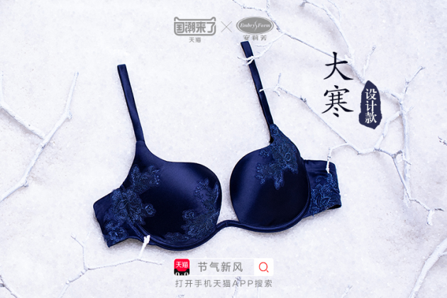 安莉芳2019年天猫国潮行动,便抓住了这股潮流热,从中国传统文化中,选择了24节气这一极具国风的主题,天猫国潮限量发布【24节气主题系列内衣】,张扬节气里蕴含的生活美学精神,传递安莉芳追求内在舒适、崇尚优雅的品牌内核。