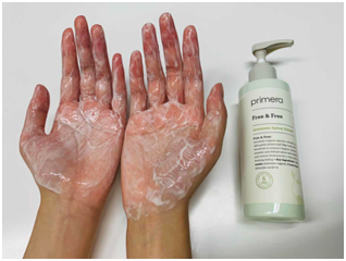 Primera私处洗液,使用前水分值是38%,使用10分钟后是55%,提升17%,补水能力良好。