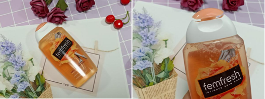femfresh私处洗液是来自澳洲的老牌私处护理品牌,我们选的是爆款——洋甘菊香型洗液。橙色的外观,扁平状,一瓶净含量250ml。瓶口的设计是一个亮点,盖子的拉伸设计,出口不大,不会一下子倒太多,还能够有效减少细菌进入,不过,挤完以后会有一点洗液残留在瓶口,需要处理一下。