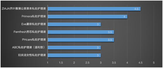夏依私处洗液、femfresh洋甘菊私处洗液、ZIAJA蒲公英草本私处洗液、Primera私处洗液、PHcare 私处洗液、ABC私处护理液、妇炎洁女性护理液。