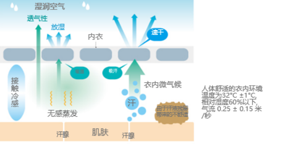 闷热的环境、炎热的天气,常常会带来粘腻、潮湿和异味等尴尬与不适。而身体保持舒适清爽的关键在于衣服内的“微气候系统。”当你穿上一件衣服后,肌肤和布料之间会产生一个空气层,我们把它称为“衣内微气候系统”。在这个气候系统里也会产生“温度”“湿度”和“气流”。生活中,你会因为很多原因而不适,比如炎热、寒冷、潮湿或是流汗,但只要衣服内的“微气候系统”运作良好,不论外界环境怎么变,你的身体都会保持舒适。