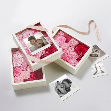 创意相框,让回忆弥漫动人花香回馈妈妈的爱,定格温情的瞬间。roseonly - for all love亲友系列母亲节特别款让爱定格相框将相框与永生玫瑰浪漫相融,特别采用透明亚克力盒盖与相册式的开合结构,盒盖配有双层透明亚克力板,用于将相片夹放其中,四角心意设计磁吸结构,配合亚克力柱提手,便捷放置相片,可容纳多种尺寸,并带来优质观赏体验。