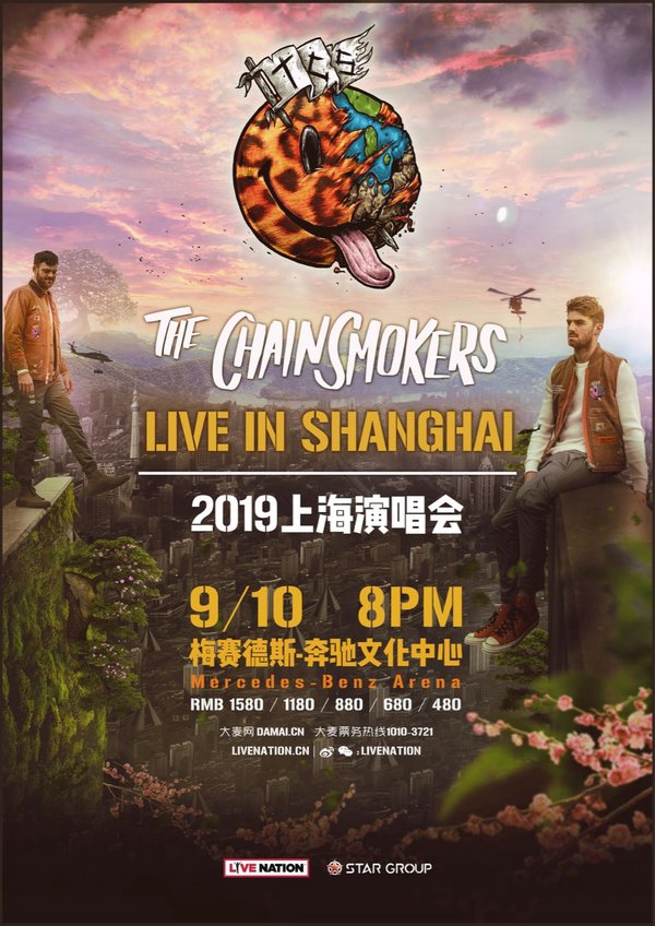 Live Nation今日重磅宣布,格莱美获奖、Billboard榜冠军组合The Chainsmokers即将重磅回归上海,于2019年9月10日(周二)登陆梅赛德斯-奔驰文化中心带来“The Chainsmokers 2019上海演唱会”。