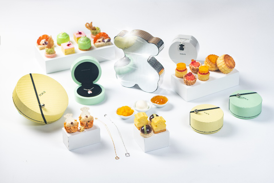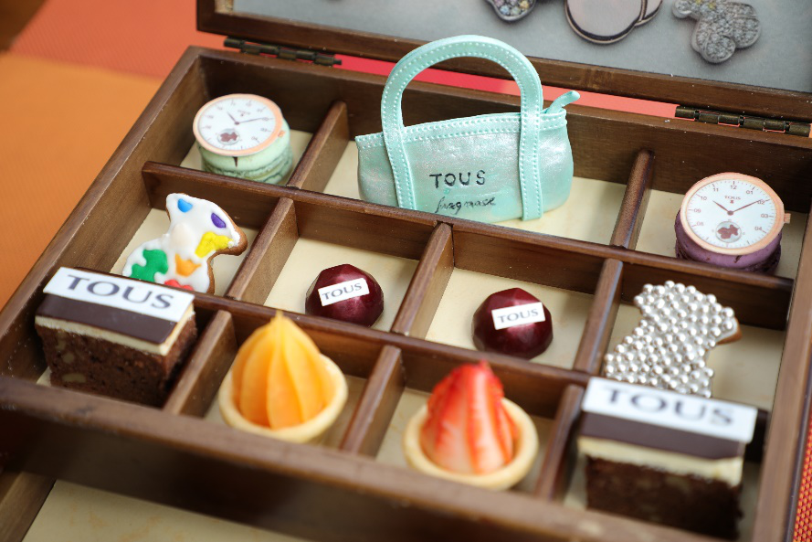 南宁鑫伟万豪酒店厨师团队精选西班牙火腿等食材,依据TOUS桃丝熊品牌标志性的小熊形象,创造出深受女士喜爱的表盘马卡龙和翻糖手袋、采用西班牙杏仁膏制作的水果杏仁塔、浓郁香醇的巧克力慕斯,以及西班牙火腿菠菜芝士红菜头面包三明治等美味小点放置于复古优雅的珠宝匣子内,为宾客带来盒中寻宝的惊喜体验。