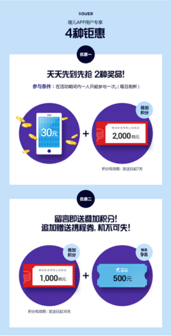 优惠二:留言即送1,000韩元叠加积分并追加赠送500元携程券,名额有限,先到先得