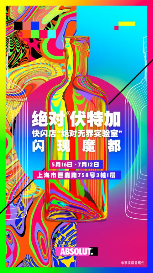 2019年5月16日至7月12日,“绝对无界实验室”ABSOLUT LAB将与消费者见面。更多详情,请关注ABSOLUT绝对伏特加官方微信和微博,或点击https://absolutlab.pernod-ricard-china.com?utm_campaign=WeChat_out&utm_medium=KOL,抢先了解最新消息!
