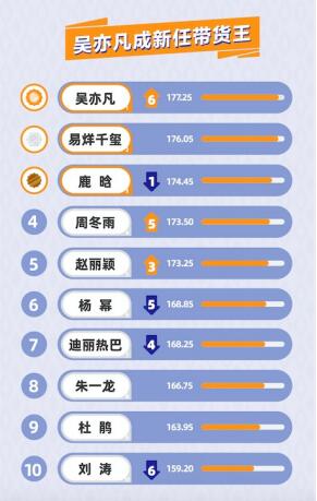 吴亦凡成新任“带货王” 朱一龙、杜鹃首次晋级前10