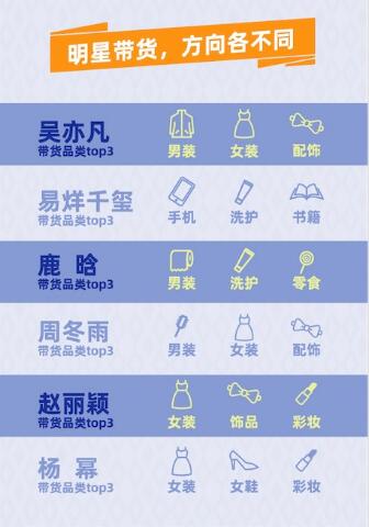 每个明星的定位和属性不同,他们“带货”方向也不尽相同。