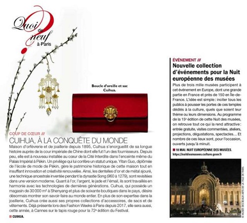 (萃华“叩响幸福”花丝手包登上法国著名时尚配饰杂志《Paris Capitale》)