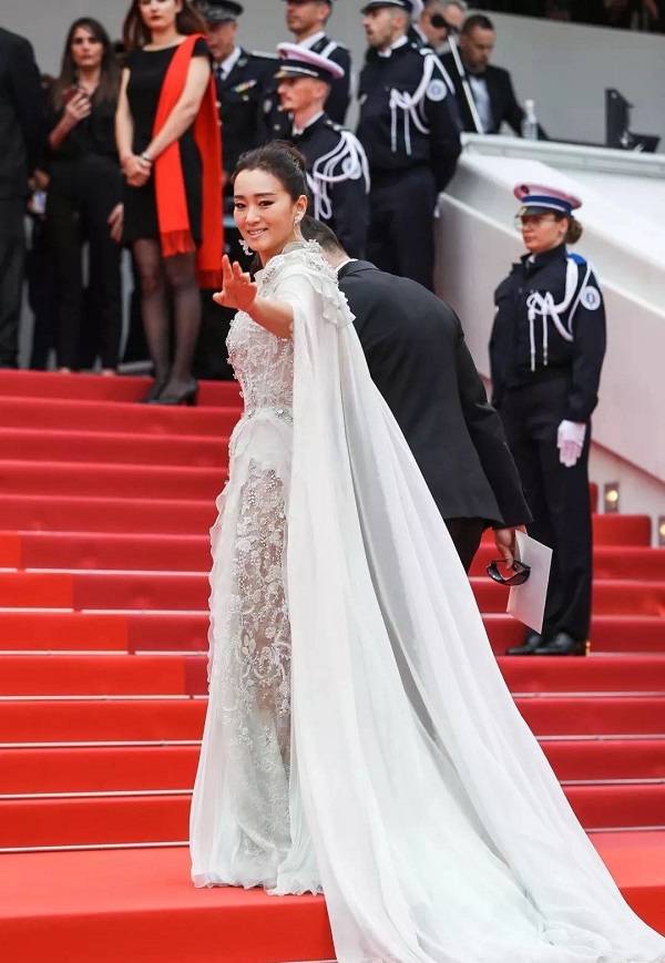 作为第十八次出征戛纳的中国电影标杆式人物,巩俐身穿Ralph & Russo高定礼服佩戴Boucheron珠宝亮相开幕式红毯,获得了“专人清场”外加“官方转播镜头2分钟”的神级待遇。