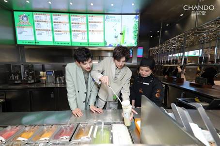随后,姚弛和邓超元移步到上海环球港楽楽茶门店,亲手为现场媒体及KOL制作了本季最in的限定款茶饮“越桔懒懒茶”。该款特调茶饮从茶马古道面膜主推款「绿茶越桔面膜」中汲取灵感, 将“年轻人爱喝的茶”与“肌肤爱喝的茶”完美融合。这次的跨界合作不仅为消费者的肌肤和味蕾提供了美好的体验,更代表了一种轻松、舒适、自然的“都市轻生活”态度,满足年轻消费者在繁忙都市生活中喝一杯下午茶、敷一片面膜、偷一刻小懒的情感需求。