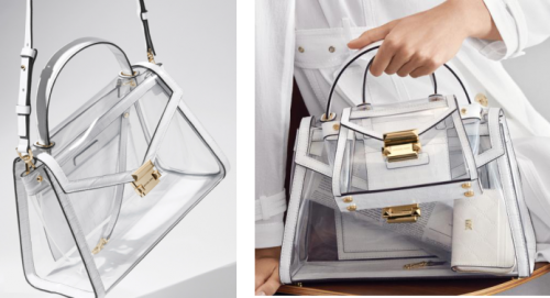 近几年大热的PVC透明包包凭借独特的外形和别致的设计,成为闪耀出街的不二之选。而MK推出的Whitney透明单肩包,在透明 PVC 材质打造的基础上,使用鳄鱼纹皮革镶边,与主包内侧相互呼应,从一众透明包包中脱颖而出。让我们一起来看明星如何演绎此款Whitney透明单肩包。