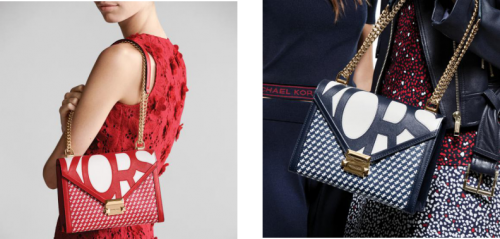 MK用品牌名中的KORS 字母与LOGO对手袋进行装饰,为手袋注入摩登格调。浸染浓郁热情的红色,浪漫信号随身姿释放;沉迷忧郁优雅的深蓝色,随性气质缓缓流淌。拼色包袋碰撞出彩,装点LOGO印花,吸引你的全部注意力。