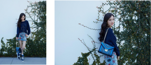 时尚达人杨幂作为MK全球品牌代言人,身穿 Michael Kors 2019 春季系列率性游走街头,上身着融入经典 “爱与和平” 标志的靛蓝色套头衫,搭配MK涂鸦印花半裙,俏皮贴饰和涂鸦印花带来新潮感,而浅色调牛仔布则与丹宁 Whitney 手袋相呼应,渐变的三色皮革碰撞品牌logo,展露时髦与活力。