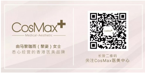 亲自打理的品牌,于2017年在香港正式上市。CosMax (WeChat ID:CosMaxHK)作为香港医学美容知名机构,公司坚持以顾客健康及安全为中心,拥有顶尖的专业医师团队, 致力于为顾客度身打造个人化医学美容疗程,遵循客户至上为原则。