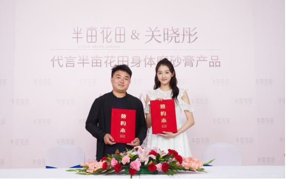 2019年5月,致力于追崇天然植物肌肤护理的新锐品牌半亩花田正式宣布签约“国民闺女“关晓彤为品牌身体磨砂膏产品和身体皂产品的代言人,为品牌传递年轻活力的态度。