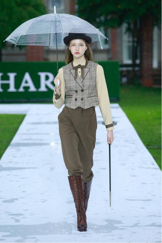 打破现有的格局,重新塑造出不同造型。通过不断的思考与想像,运用苏格兰格子重塑欧洲学院风的英伦味道,体现自然优雅与贵族气质。其中以含蓄、骑士、优雅、高贵为特点,以良好的剪裁、独立的面料风格带领大家漫游郊外之旅,领略查尔斯·狄更斯笔下的世界庄园。