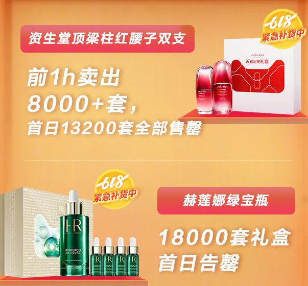 不少美妆大牌会把最当家的产品装入天猫定制礼盒,仅在6月1日就卖爆了:开售第1分钟,HR赫莲娜绿宝瓶系列礼盒就售出5337件,一天内共卖了18000套;资生堂红腰子双支礼盒,开售第一个小时卖出8000多套,当天13200套全部售罄。
