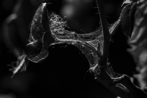 她对于自己未能从事国画艺术耿耿于怀,因此也造就了她对中国元素抱有独特见解。在新系列作品中,吴小妹将镜头只对准花朵,用相机这种机器画笔描绘出国画中花的姿态。作品中的花朵或盛开,或枯萎凋零,或病虫灾害,这些代表着她对生命的新感受与表述。酸楚的心境开启了吴小妹心底Vanitas(虚空) 的艺术时代。生命如花般脆弱,像《愁》(Distress)中的玫瑰一旦被虫吞噬,必然面对枯萎的结局。无归属感促使她思考并创作出这一系列。