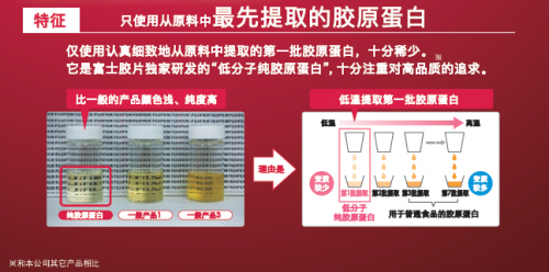 不仅仅是胶卷,富士的胶原也有独特的优点。虽然都有“胶”字,但二者截然不同。从一张张恒久定格的美丽相片到如今凝聚胶原蛋白和超微纳米专研技术,ASTALIFT透过FTD晶微科技,将胶原蛋白分子晶微化,制作成一种易吸收的低分子胶原蛋白运用于护肤品中,而这个也适用于保健品的摄入。