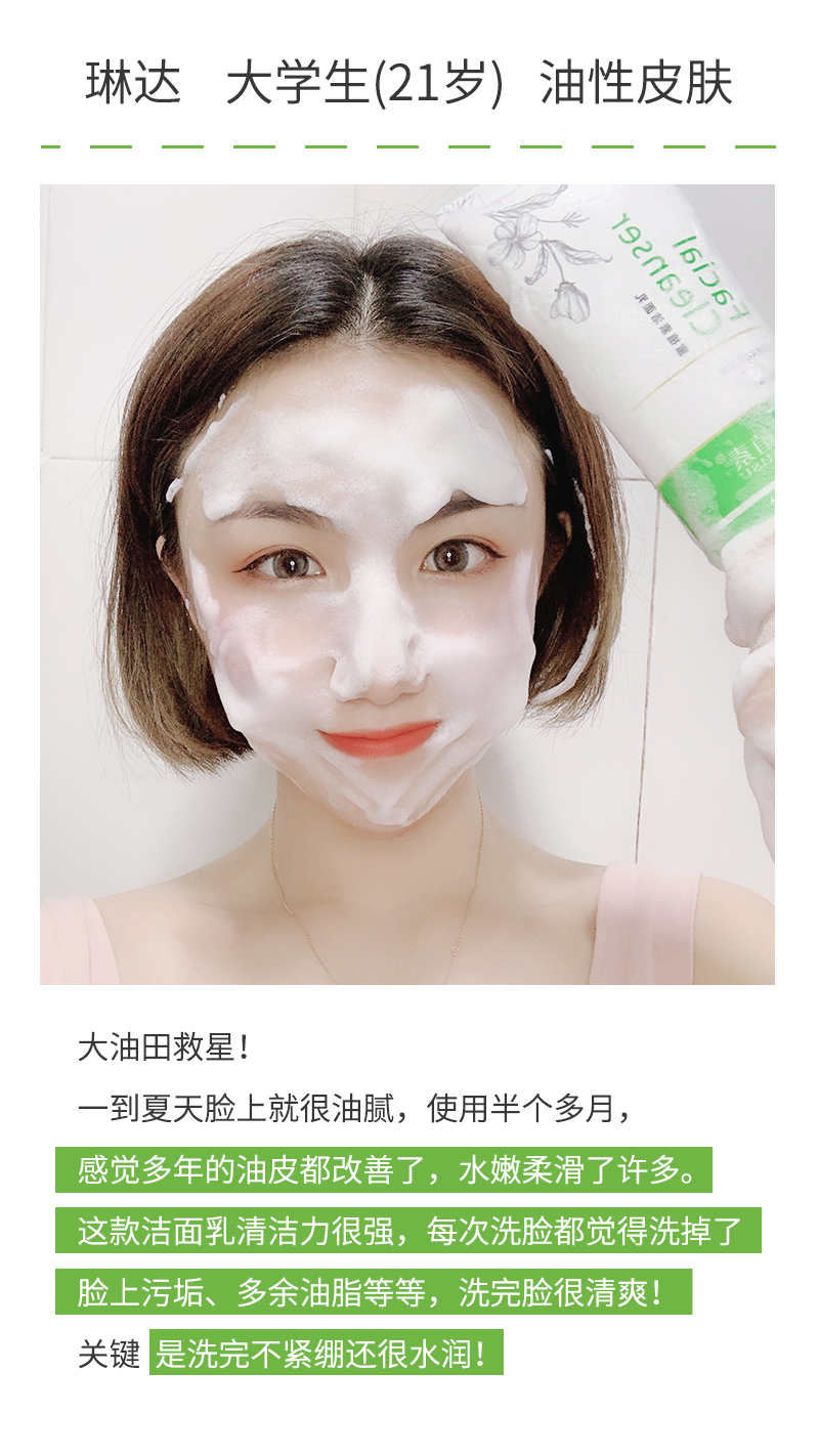 特别是卸完妆后残留的防晒霜、粉底、眼影、口红等,再用蜜植素洁面乳清洗一次,脸部清洁得干干净净,再也不用担心彩妆残留伤肤了。