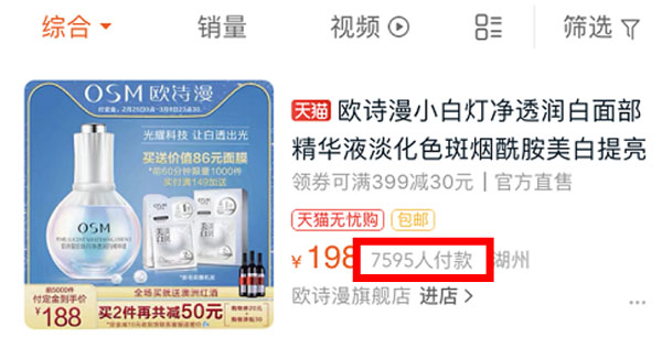 欧诗漫“小白灯”经过《女儿们的恋爱》花式诠释与背书后,卖点信息早已潜移默化植入消费者心智,致使节目外欧诗漫电商旗舰店成为大型小白灯拔草现场。截止目前,小白灯月销高达七千多瓶,已然成为护肤界的爆款单品之一!相信随着节目热度的持续升温,欧诗漫小白灯将越耀越亮!