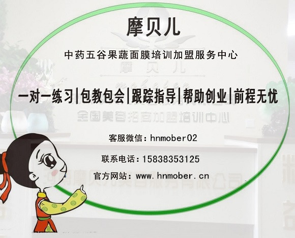 加盟美白淡斑中药面膜的配方,很多人选择河南摩贝儿美容服有限公司,作为全国五谷中药面膜加盟中心,摩贝儿打破了传统的加盟方式,以培训配方跟手法为主,面部护理跟身体管理相结合,打造全方位的美容技术人员,所有产品材料都是学员就地取材,不捆绑销售任何产品,加盟培训费用仅仅几千元,总体开店费用不超过一万元。售后全面扶持,后期可以免费学习公司新项目,真正实现了投资小,收益大,风险低的五谷面膜加盟,让很多低门槛零基础学员也能够轻松实现自己的创业梦!