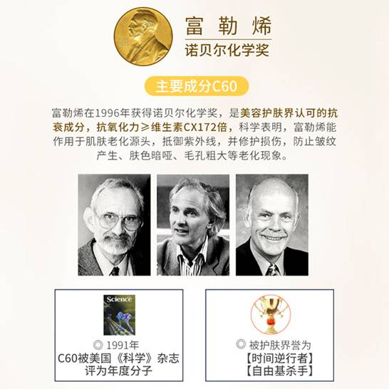 富勒烯是什么?富勒烯在1985年被科学家发现,发现者在 1996 年获得了诺贝尔化学奖。是高端抗衰老的原料,它能够很好的亲和自由基,具有极强的抗氧化能力,起到活化皮肤细胞,预防肌肤衰亡的作用。