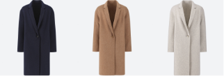 商务简约风单品为职场人士必备,优衣库秋冬外套精干与风格兼具,在上下班场景中随意切换。
