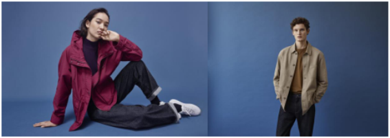 宽松连帽外套:本季优衣库推出男女两款宽松连帽外套——时尚宽版廓形,袖子设计更便于手臂活动,适合户外休闲穿着。