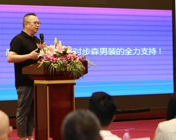 会上,步森总经理封雪女士向大家介绍了步森创办35年一路走来的历程,带领大家认识步森、了解步森,并就引入消费场景化、公司内部优化、仓储物流优化、经销零售优化、供应规范优化等优化策略做了重要讲话。她还指出,共谋长久发展之道才是互利共赢的基本保证,只有共赢才能长久,才能分享未来。希望大家和步森携手抓住国内消费升级的窗口,占领市场。以工匠精神打造中国卓越男装品牌,彰显步森人新时代的创新创业精神。从这里出发,去创造更多改变世界的可能,共同为新时代赋能。